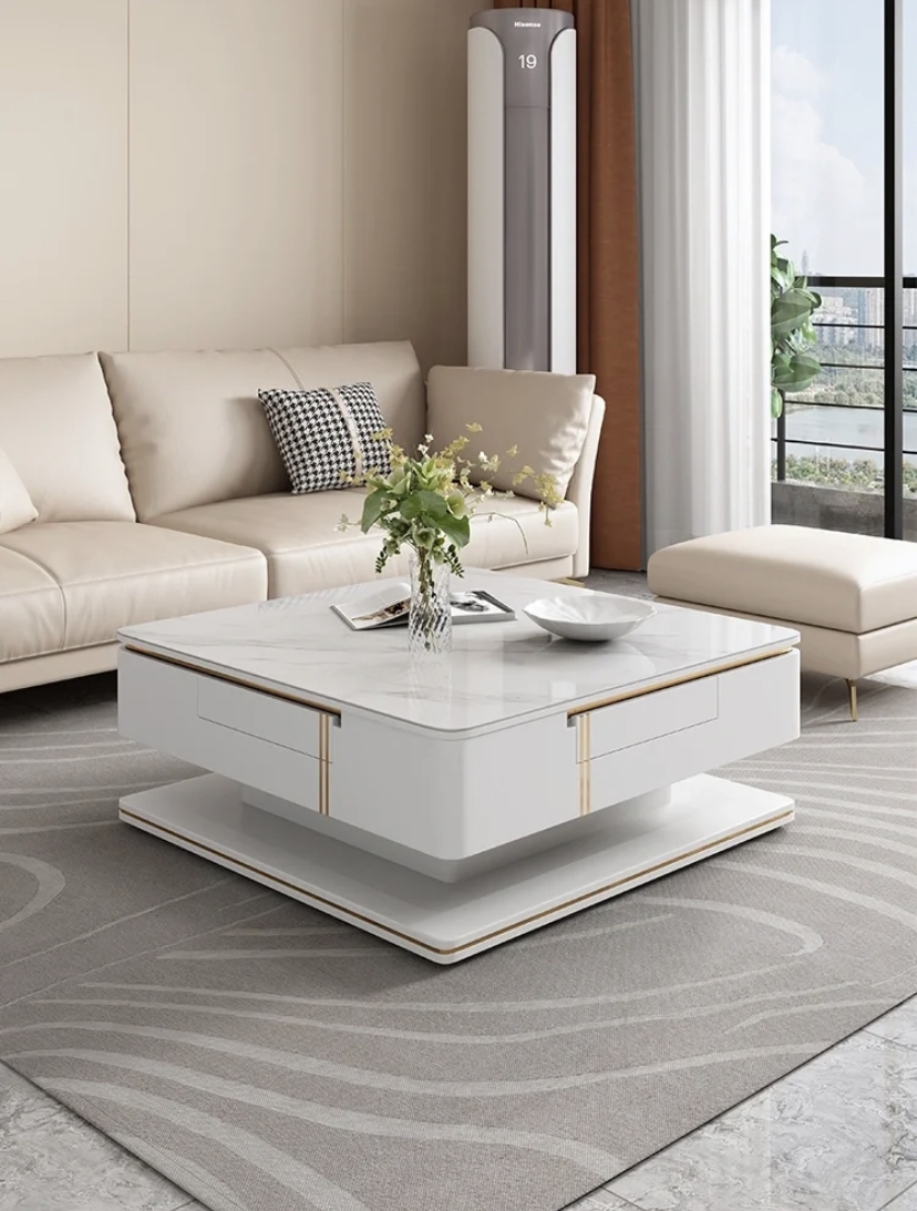 ▼第一眼看到這張桌子,還以為是普通的茶几,沒想到它能變成麻將桌。這款「大理石電動麻將桌」平時是茶几的型態,有質感灰和氣質米白色,能夠適應不同的裝潢風格。桌子的最上方是大理石桌墊,擺在家中頗具質感。