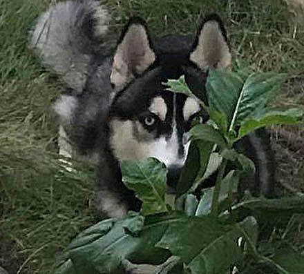 ▼哈士奇躲在植物後瞪著主人,好像在說:「兇什麼?明明就是你沒有帶我們出去散步,該反省的人是你才對。」