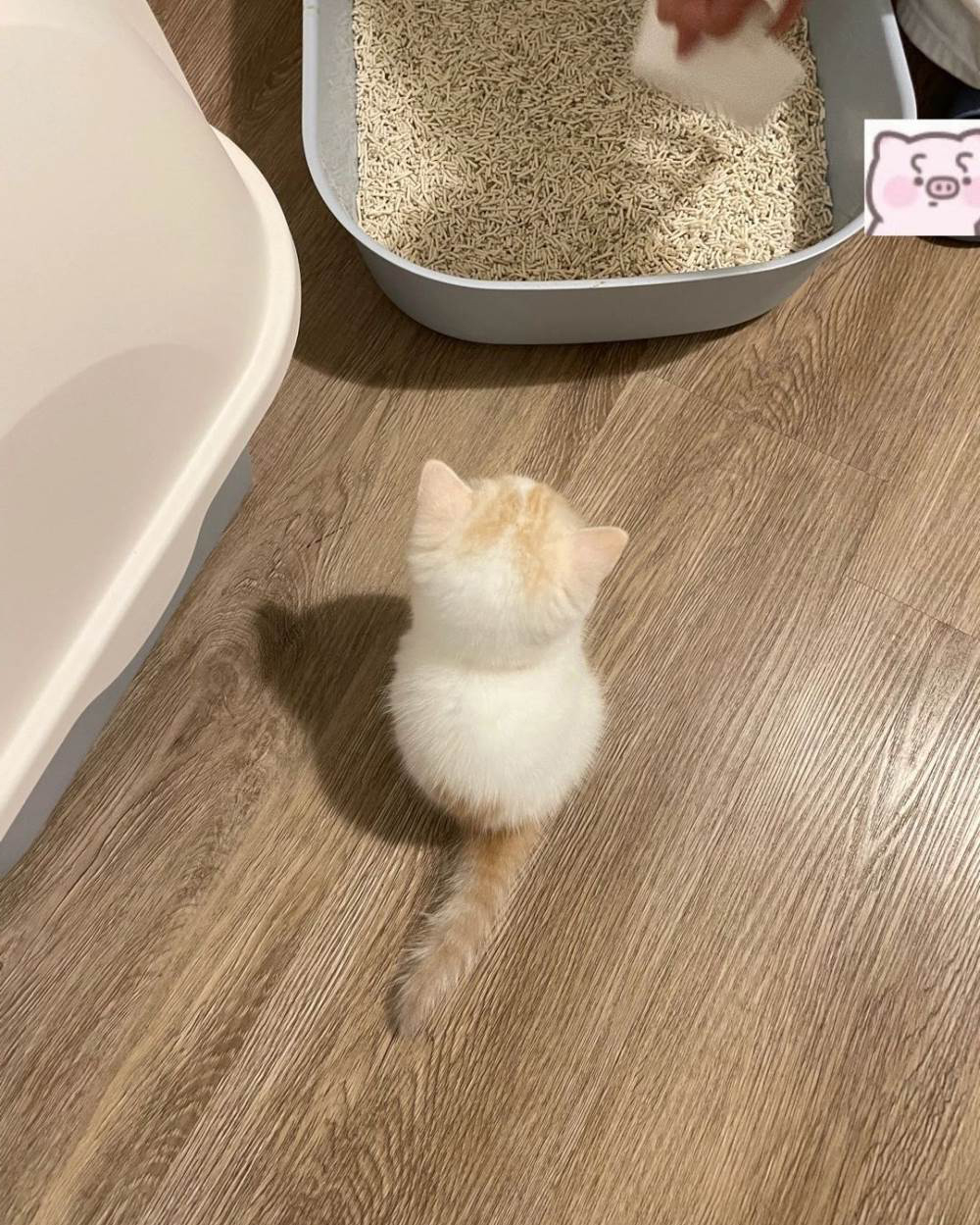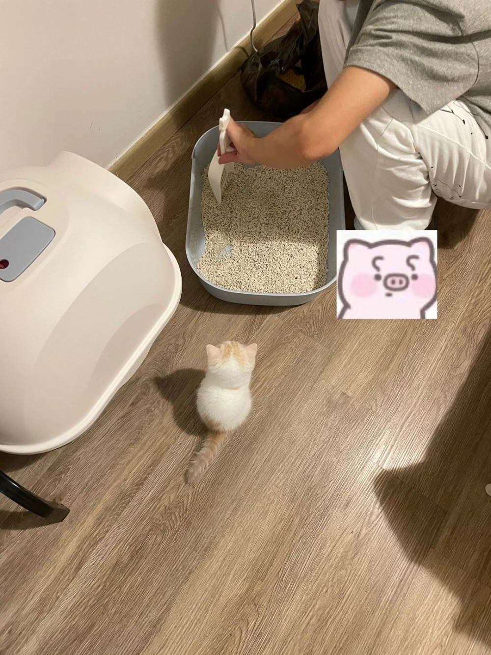 好好收拾貓砂盆,貓咪大人在看著你~下面這位網友養了一隻可愛的小奶貓,每次網友清理貓砂的時候,小貓都會跑過來,坐在一邊好奇地看他鏟貓砂。小貓體型小巧,又胖乎乎的,遠遠看去就像小雪人或毛絨娃娃,那Q萌的樣子太治癒了。
